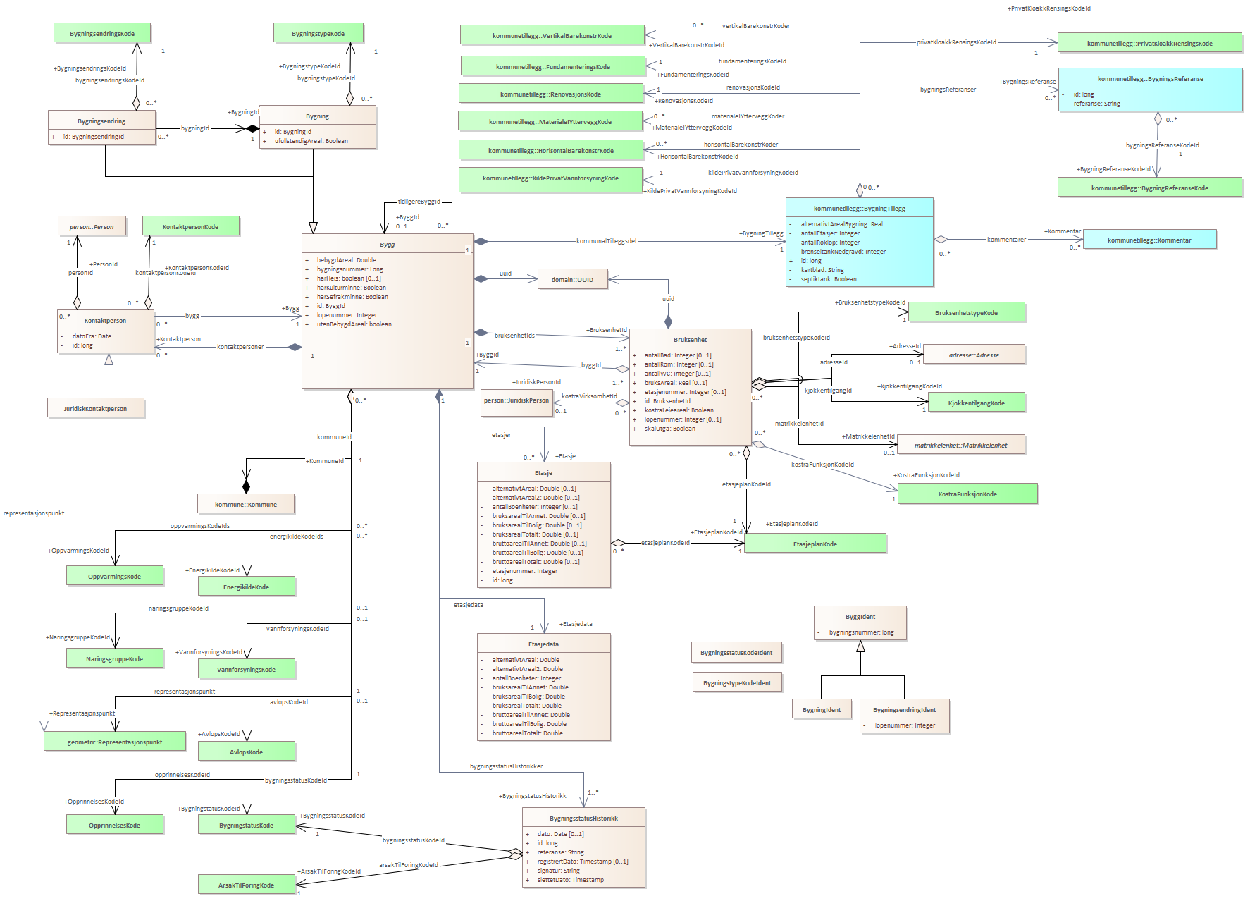 Implementasjonsmodell for bygning og tilhørende klasser.<br/>